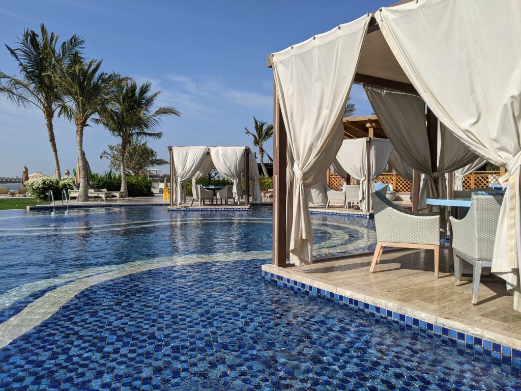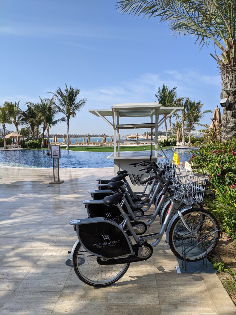 One of the best things about a trip to Dubai is the ability to have both city and beach experiences, all for the cost of one plane ride. In the morning, we said goodbye to the gorgeous hotel Oberoi and jumped into a taxi for the 20 minute ride south to The Palm Jumeriah. The Palm is a massive land reclamation project (shaped like a palm tree and topped by a “ring”) completed by the Emirates in the Persian Gulf, that has become a resort paradise of luxury hotels, vacation homes, and entertainment zones. Our hotel, the Waldorf Astoria Dubai Palm Jumeriah, is located on the west side of the ring surrounding the fronds. From this comfortable base, we spent the next few days doing no more than enjoying the sand and the warm seas and the sun. We had intended to visit Abu Dhabi during this portion of our trip; however, mandatory quarantine restrictions due to COVID made it too difficult to accomplish. We’ll be back for sure to see it in the future.
