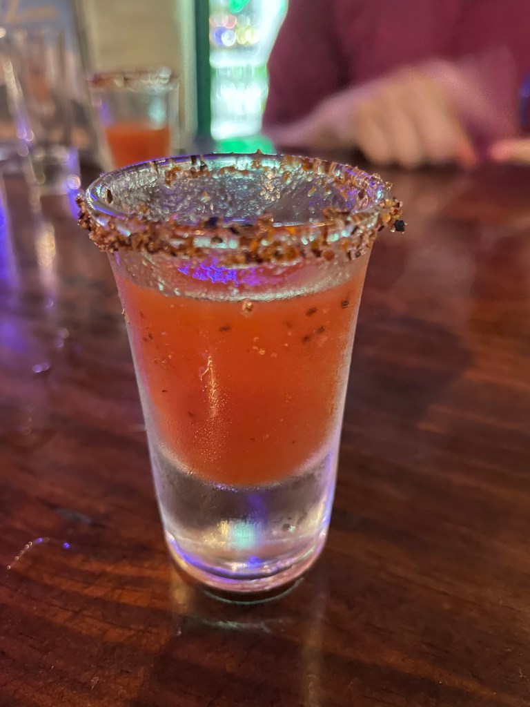 We arrived in La Fortuna just in time to beat a tremendous storm. We literally crossed the top step and under cover at Pollo Fortuneno for lunch as the rain came pouring down, the wind blew at 40 mph, and the thunder and lightning crashed and flashed. We enjoyed our BBQ lunch as we watched nature rage, and as fortune would have it the storm was over as we were ready to leave. We found a tour guide for the next day (Jacamar Tours) and made a reservation, then had a cocktail at Lava Rocks Cafe -an on the house chilijuaro- tomato, lemon, cacique, pepper and salt- thanks, Lava Rocks!