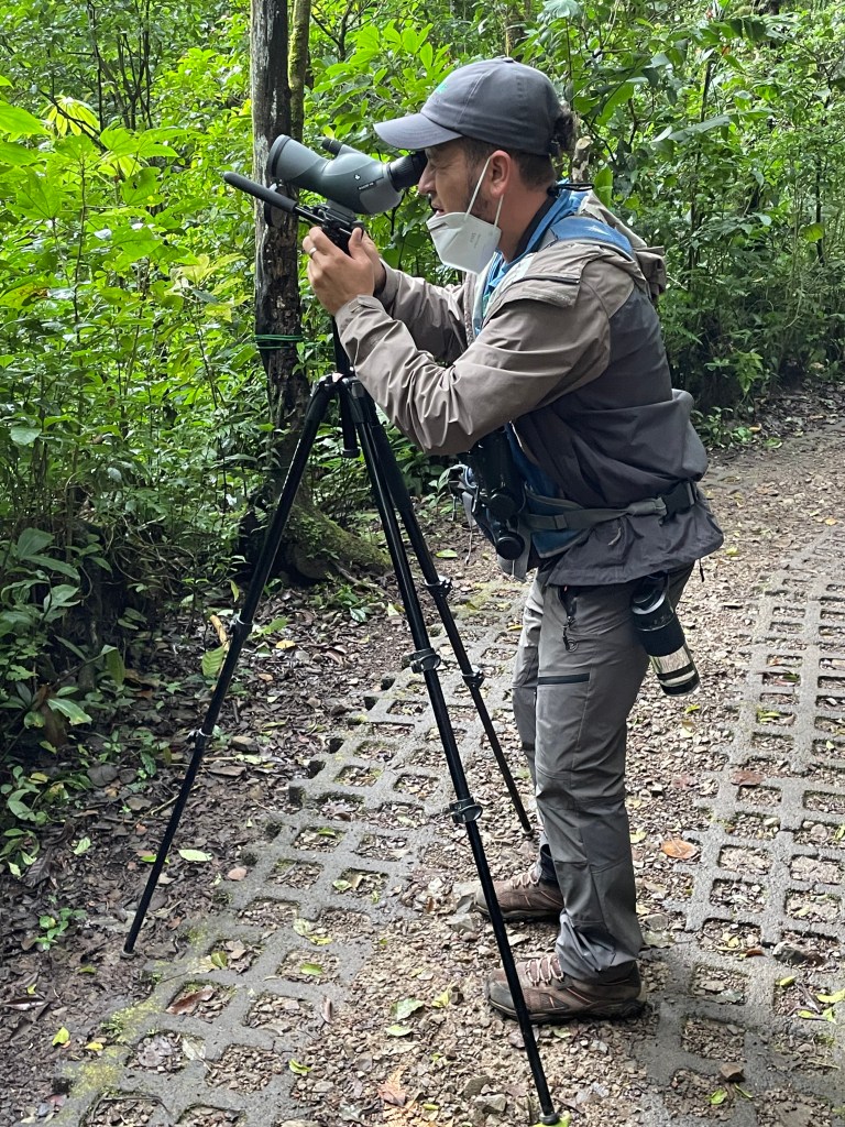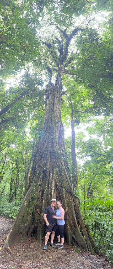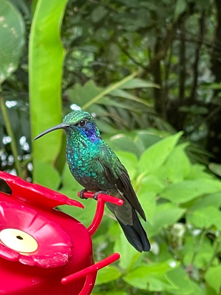 Seriously, he tried very hard to get that bird in a scope! We saw a number of birds with our group, which was very international- the Germans and a couple from Holland, which is one of our favorite aspects of travel- chatting with people from all over the world. Mostly we enjoyed the jungle full of ficus trees and the vines that would one day envelope and strangle other host trees to become new ficus- such an extraordinary life form. The canopy was full of rioting monkeys, and the falling rain of leaves from their thrashing was beautiful. We stopped at a small hummingbird conservatory for about 15 minutes before departing, which was really nothing more that feeders hanging on a terrace, and got a kick out of watching the drama of flitting birds and all their controversies at the feeders.