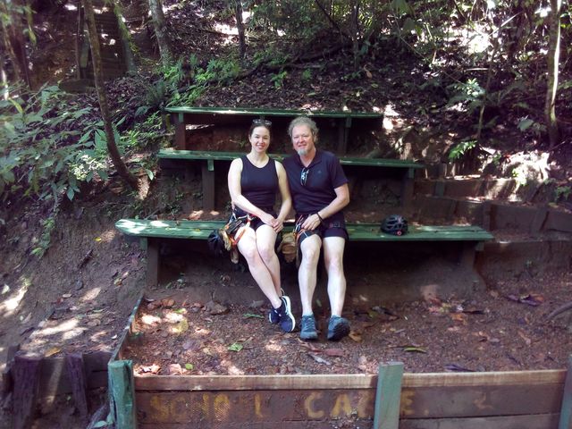 We cleaned up and checked out, in anticipation of our next stay at the Hotel Pumilio, but first we had an appointment with the zip line tour. It was my first time, but Kelly has done it before and looked like a pro.