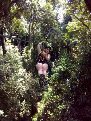 We met up at a restaurant at the base of the hill, geared up, and headed up into the jungle in a van. Once dropped off, our two guides took us on a short hike to the best classroom ever, where they educated us on how to operate the brake (a leather glove), how to get the rest of the way if you didn’t quite make it (hand over hand), and how to enjoy the views, which were incredible. We crossed a suspention bridge and were finally zipping through the canopy.