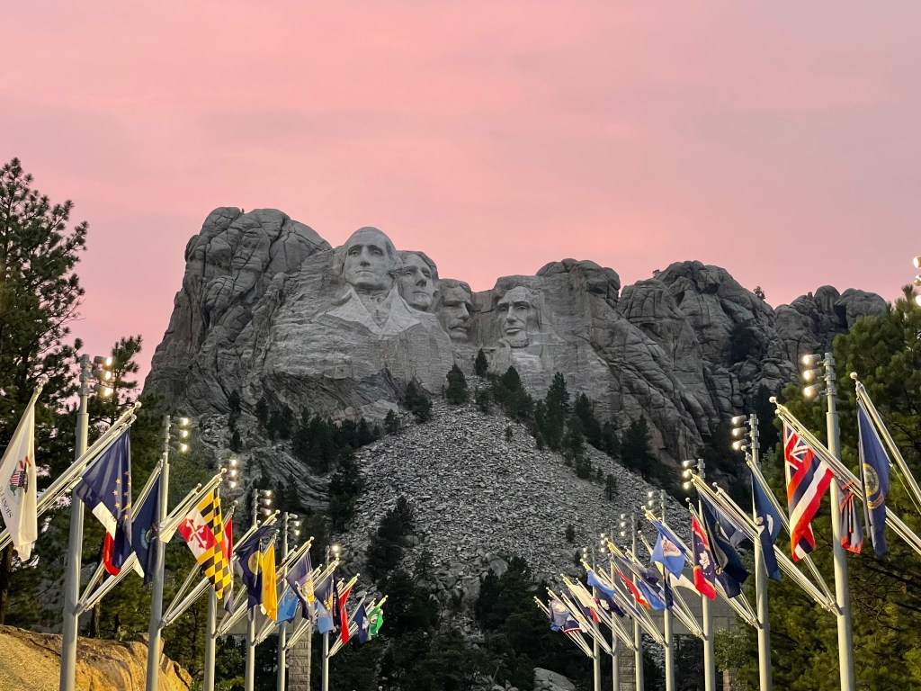 We’ve seen this picture or something like it on textbooks and news programs and television shows and in magazines for our entire lives, but nothing- NOTHING captures the feeling you get when you’re standing in front of it. We were expecting kitschy, but there’s a grandeur that overwhelms everything else. We spent some time milling with all the other people from everywhere (seriously! Just about every state was represented judging from the license plates we saw in the parking lot), and then settled in for the evening show, which was a story by a park ranger about her American journey, a short film which talked about the presidents emblazoned on the mountain and why they were chosen to be there, and then a lighting of the faces just after dark: