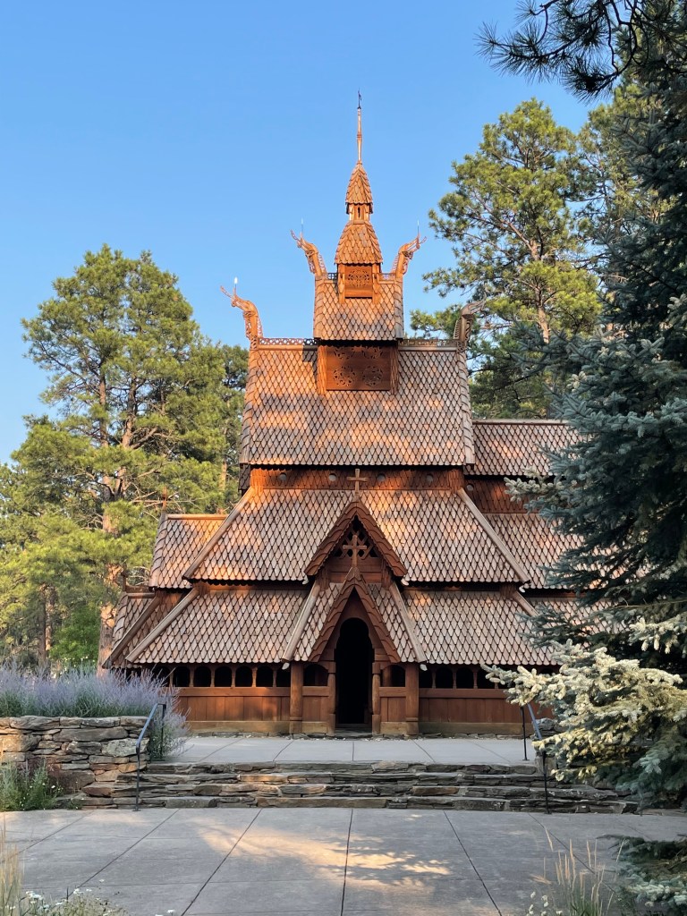 From here we boarded a trolley that took us to a couple more points of interest, including the Dahl Arts Center, the Journey Museum of Native American Culture, a dinosaur park, and Stavkirke Chapel, a gorgeous little chapel in the hills, which is a reproduction of one in Norway.
