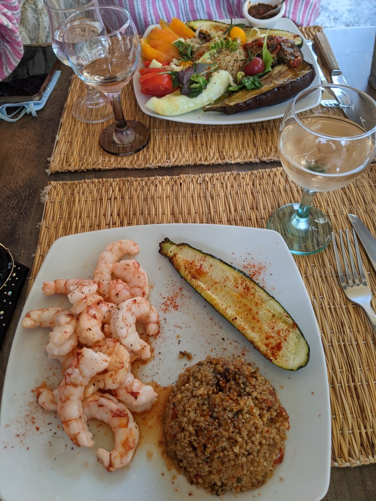 My brief journey to San Francisco complete, I couldn’t wait to get back on a plane and return to France. Kelly had been seeing the sights, including a return trip to Arles and their fantastic Saturday market, along with Cassis and the wonderful clear water inlets there. I felt like I had been missing out, but at the airport I scored a business class upgrade on British, so I made up for some lost time in France with some French wine with my dinner en route.