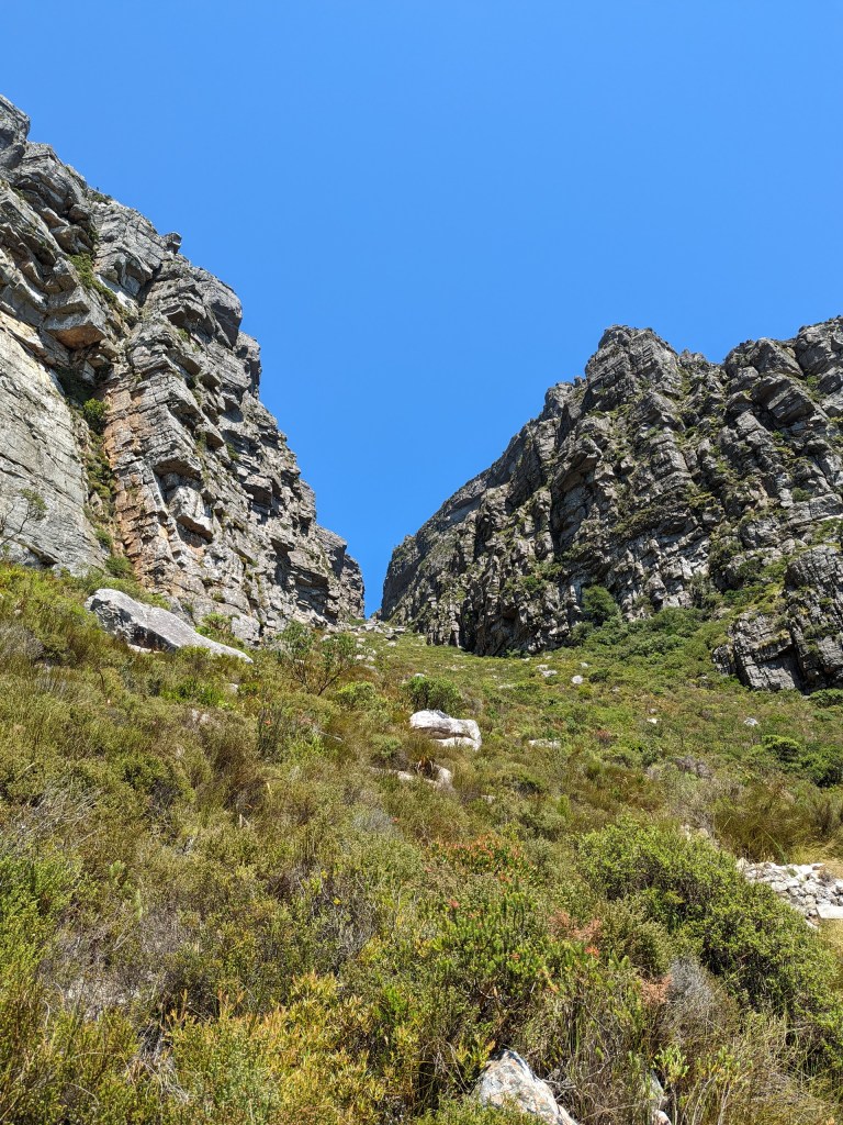 We’d thought about taking the shortest route directly under the tramway, but the eyes of the woman at the information desk when we asked where the trailhead was told the tale. She HIGHLY RECOMMENDED taking the Platteklip route, because although it may be slightly longer, there was some tiny amount of shade, whereas the shorter trail had no shade at all. Seriously, she appeared to be worried for us. So we took her advice, and after applying copious amounts of SPF 50 we headed towards:
