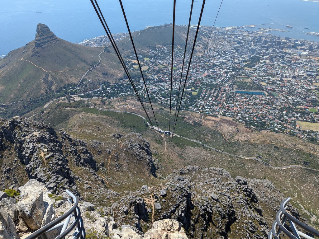 BUT INSTEAD OF LEAVING RIGHT AWAY EARLY FOR THE HIKE, we decided to have breakfast at a leisurely pace, and then head down to drop our laundry off (for a much better price than the hotel was willing to offer us!), and then make our way at a mosey to the hop on/hop off bus (which was really enjoyable and we recommend it), until finally we were dropped off at the base of the Table Mountain tram at about 1015, JUST IN TIME FOR THE HOTTEST PART OF THE HOTTEST DAY.